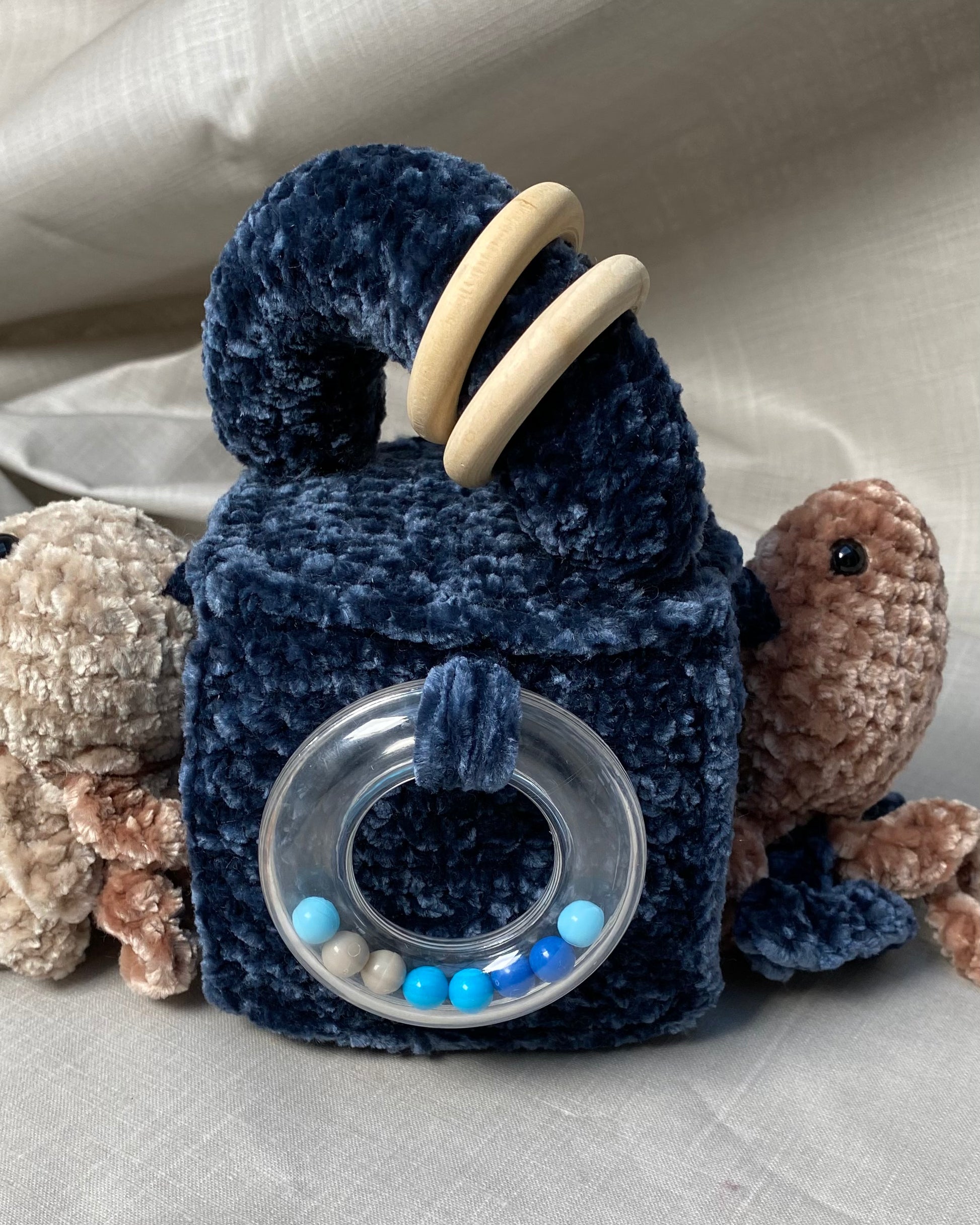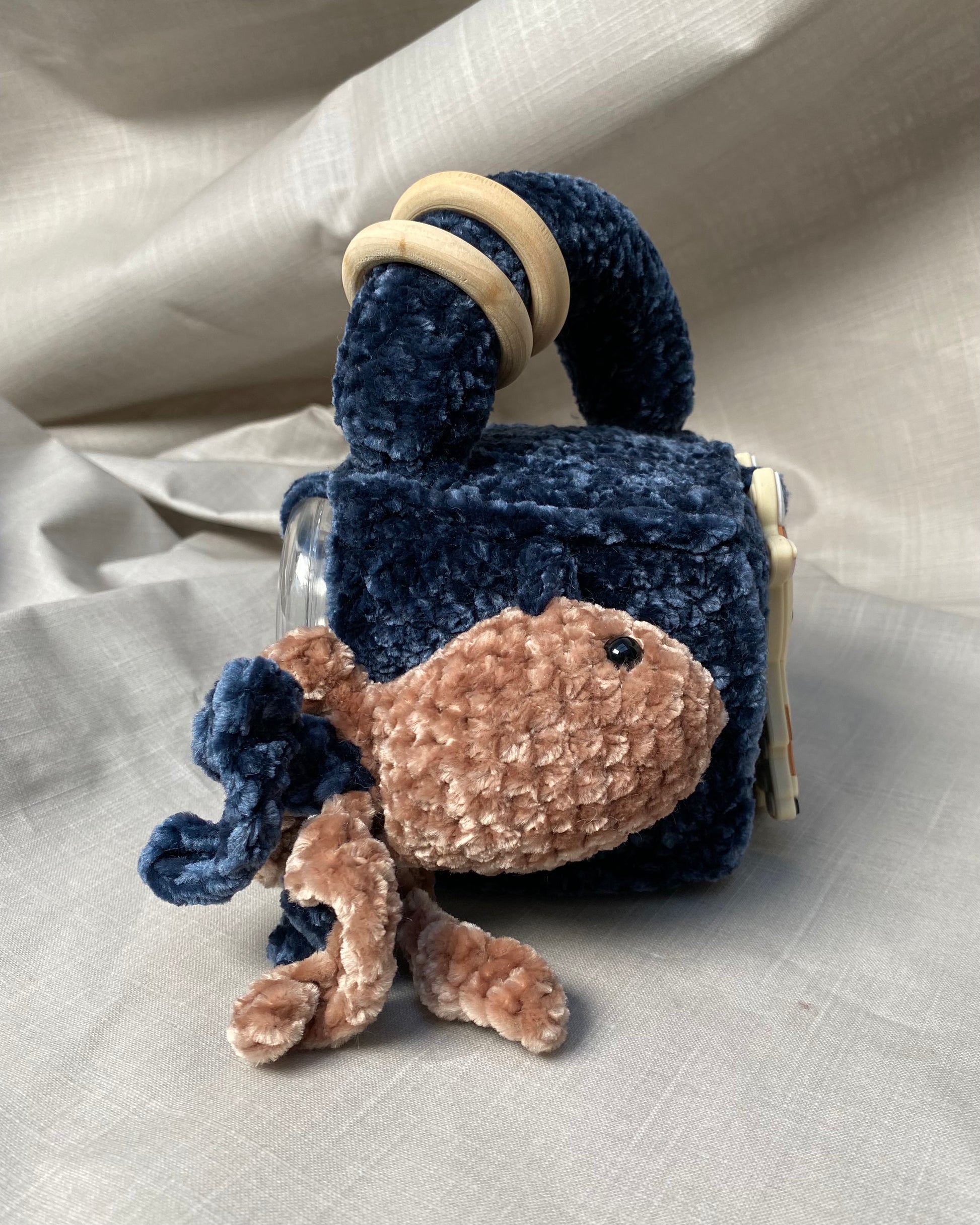 Mjúkir leikfanga kubbar með allskyns afþreyingu á öllum hliðum.